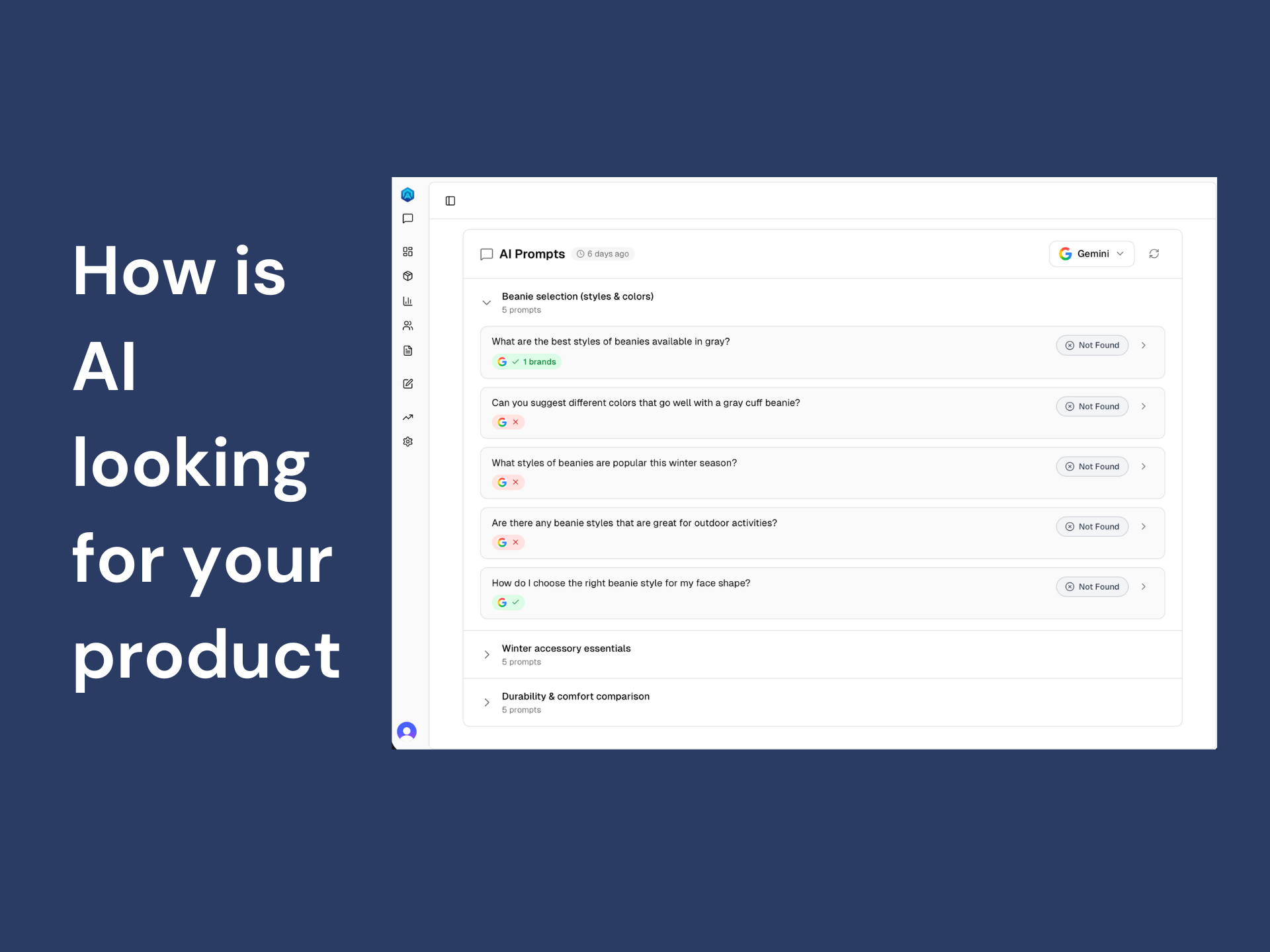 AI Shelf Visibility → More Qualified Traffic: Make sure ChatGPT / Perplexity / Gemini recommend your products (not your competitors) when shoppers ask “best X for Y.” Turn AI discovery into a new acquisition channel you can influence, not hope for