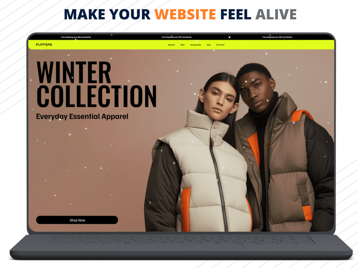 • 100% Non-Intrusive - Site Stays Usable Effects run on a transparent overlay layer. Your menus, buttons, and content remain fully clickable. Performance-optimized canvas rendering