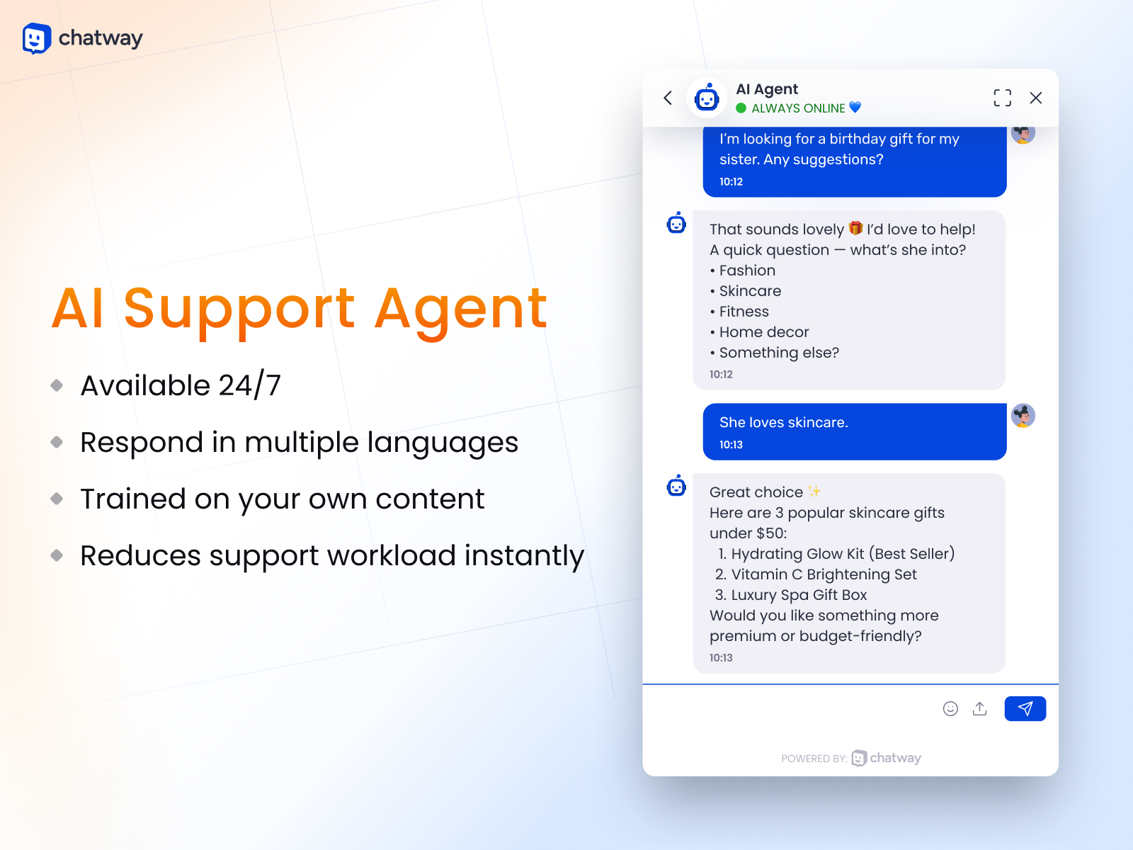 As visitors use live chat, they may have questions or issues. Through the live chat widget and AI chatbot, they can get instant answers and share feedback.