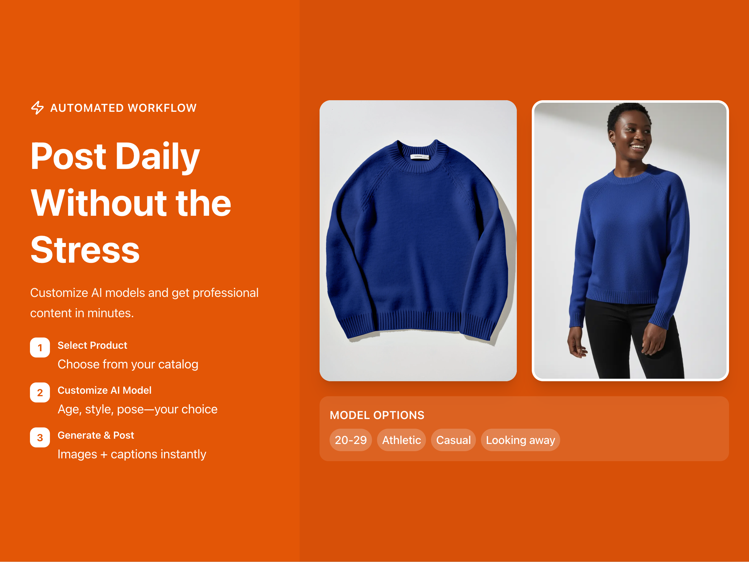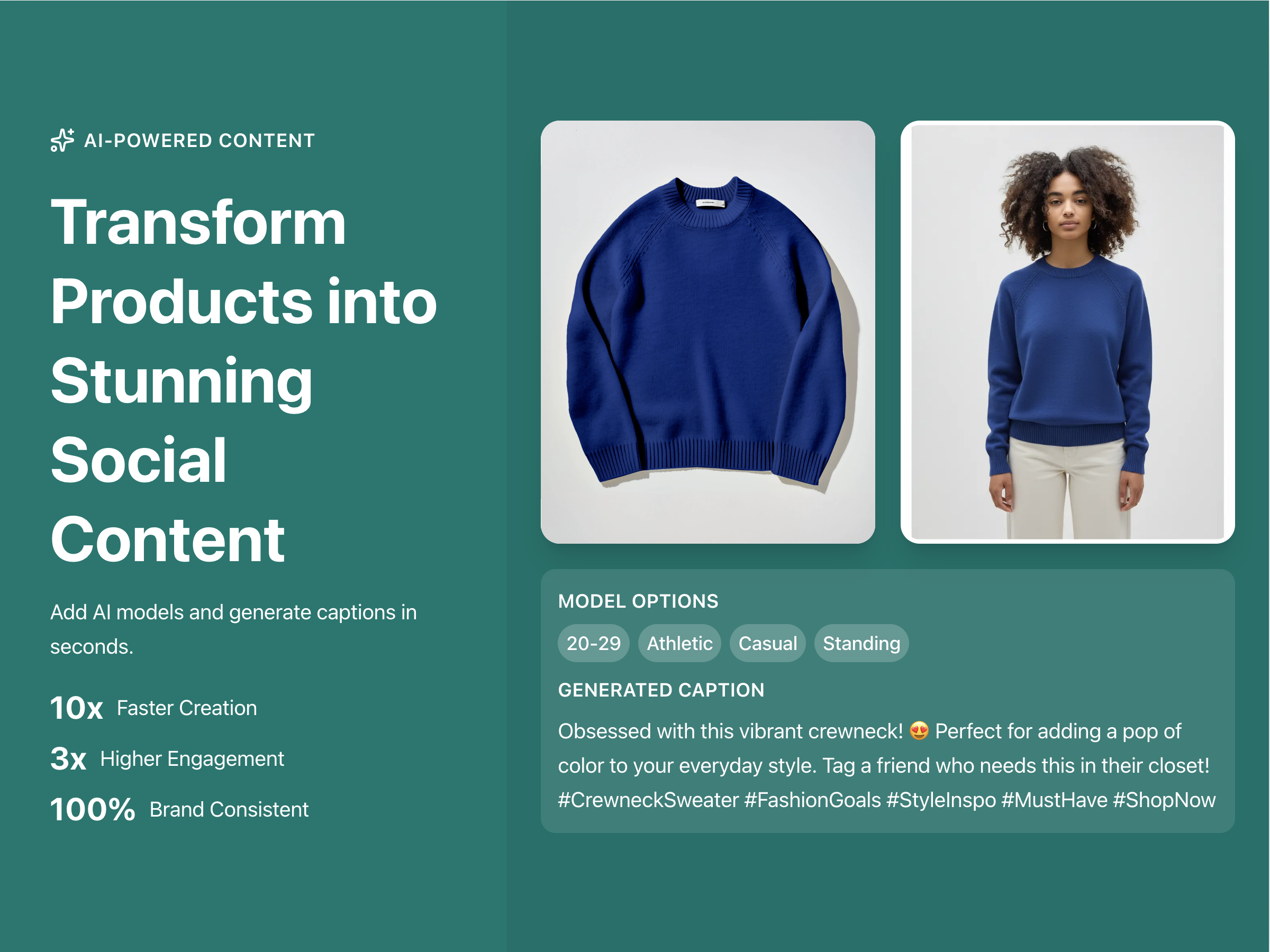• Photo Enhancement & Optimization That Converts; Enhance existing product photos, improve clarity and lighting, and showcase products on AI-generated models for professional, conversion-ready visuals