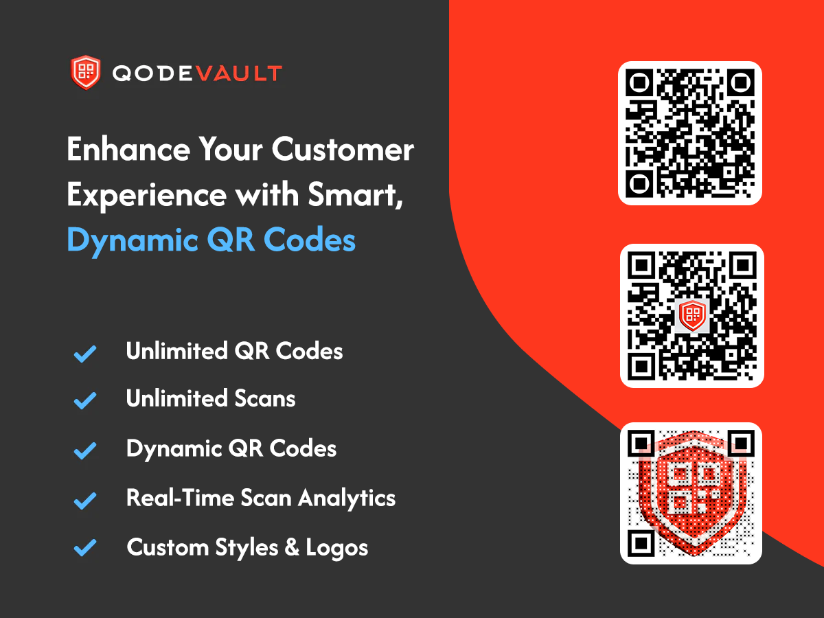 QodeVault helps you generate, manage, and market your QR codes with ease. Whether you’re creating custom QR codes for products, campaigns, or events, QodeVault offers a seamless way to design, organize, and track them—all from one place. With its intuitive interface, you can customize QR code styling, manage your entire collection, and access insights to enhance your marketing strategy.