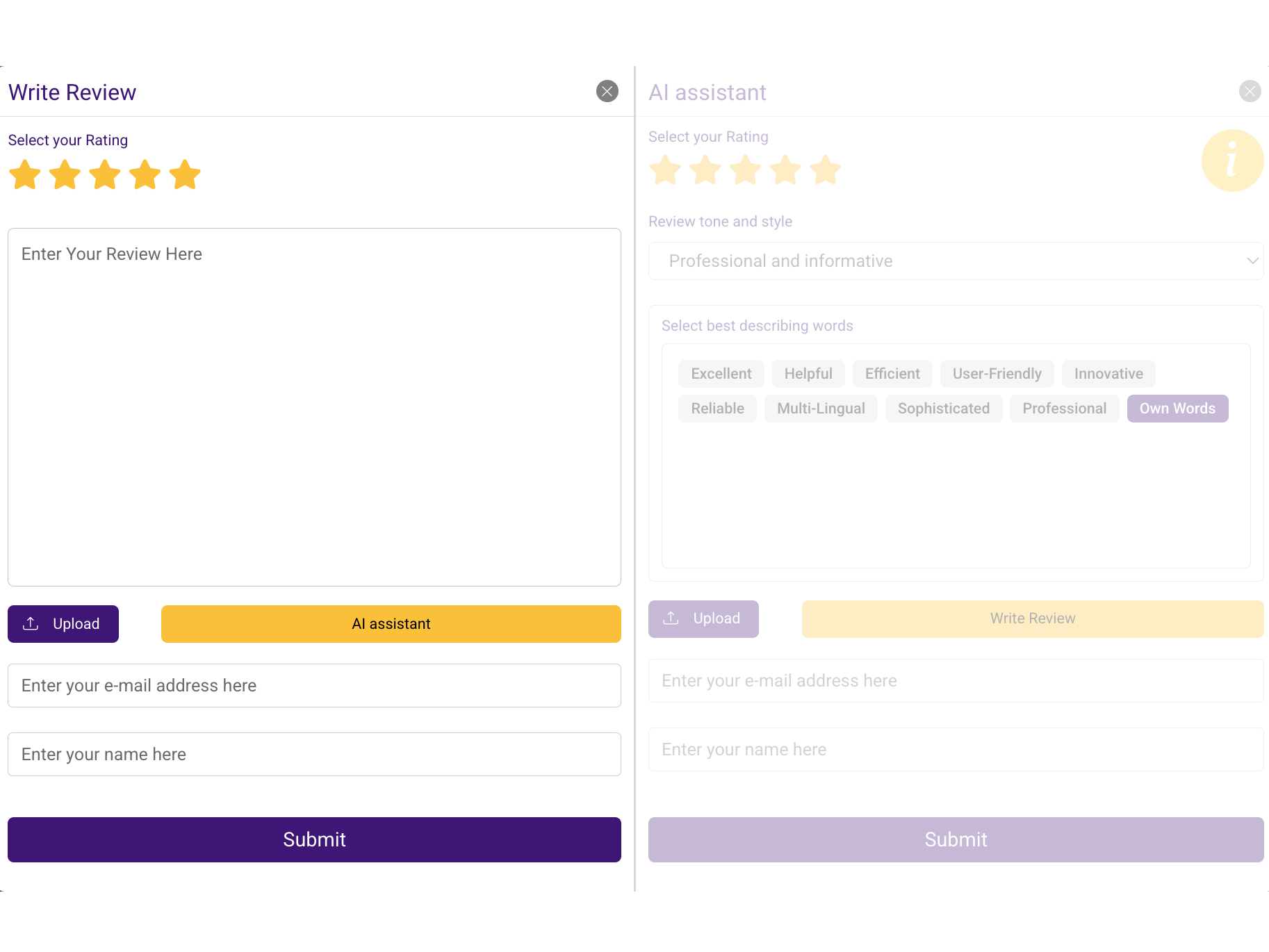 * AI Review Assistant - Help customers articulate their thoughts in any language. Perfect for international businesses.