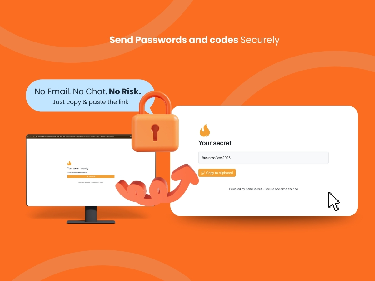 Securely Share Sensitive Information SendSecret lets you safely share passwords, access codes, credentials, and private instructions using one-time, self-destructing links. Each secret can only be viewed once and is automatically deleted after access. No more sending sensitive data through email, chat apps, or screenshots. Why Use SendSecret? Email and messaging apps aren’t built for sharing private information. SendSecret reduces the risk of data leaks by ensuring your confidential details don’t live forever or get forwarded accidentally. Perfect for businesses and individuals who take security seriously. Built for Privacy With one-time viewing and automatic deletion, your secrets stay private—exactly how they should.